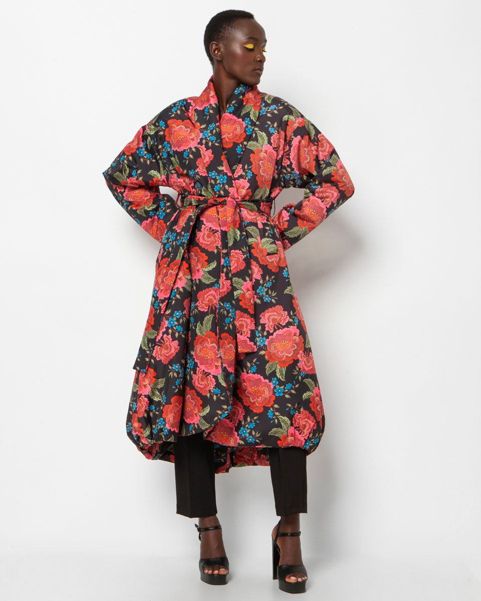 Long puffy kimono style knit jacket with amazing floral pattern. Oversize baggy style and can be worn with any outfit style. Very warm for winter.