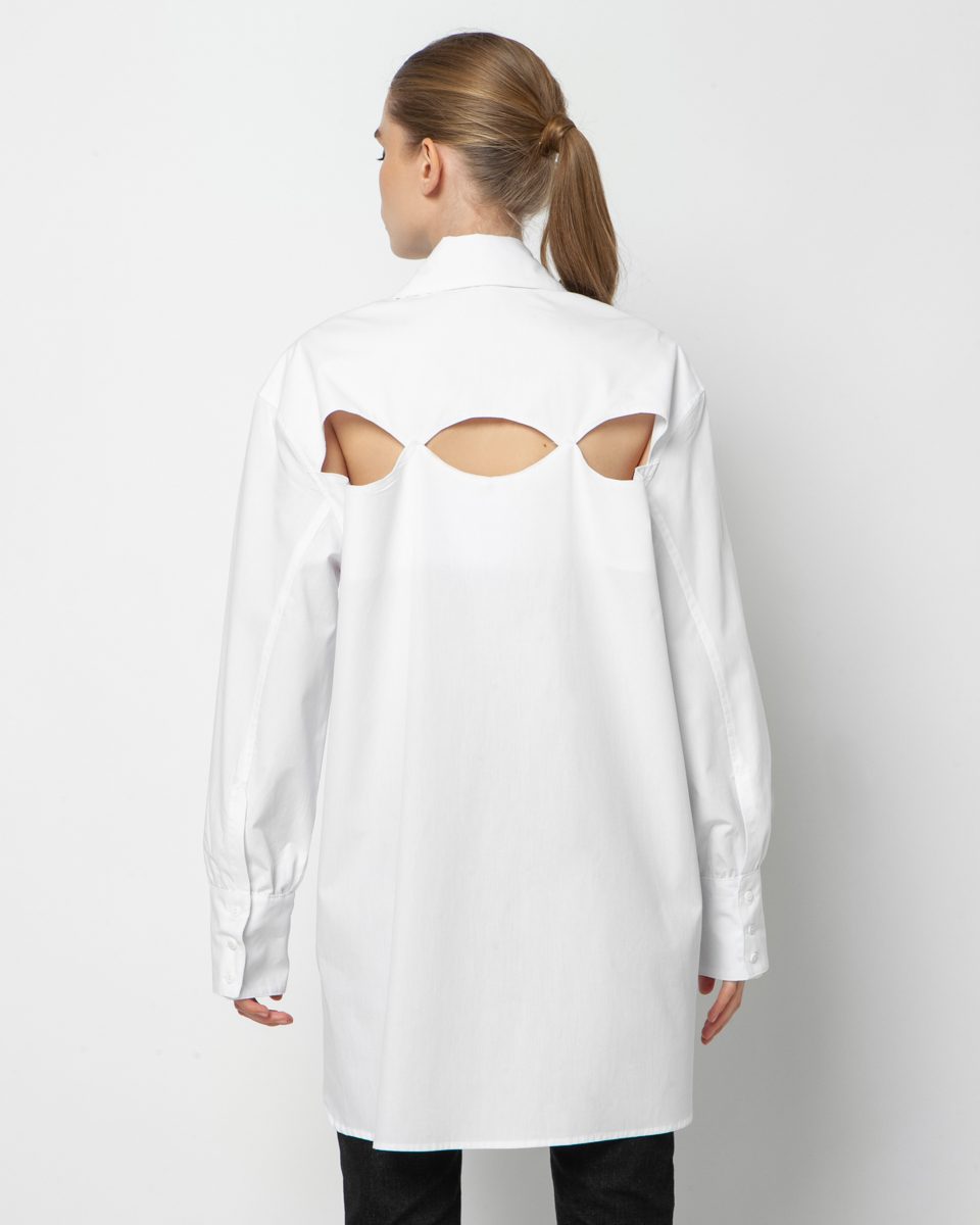Oversized shirt with special collar & openings on the back. Can be worn with leggings or even with opaque tights. Very nice weaving and special design.