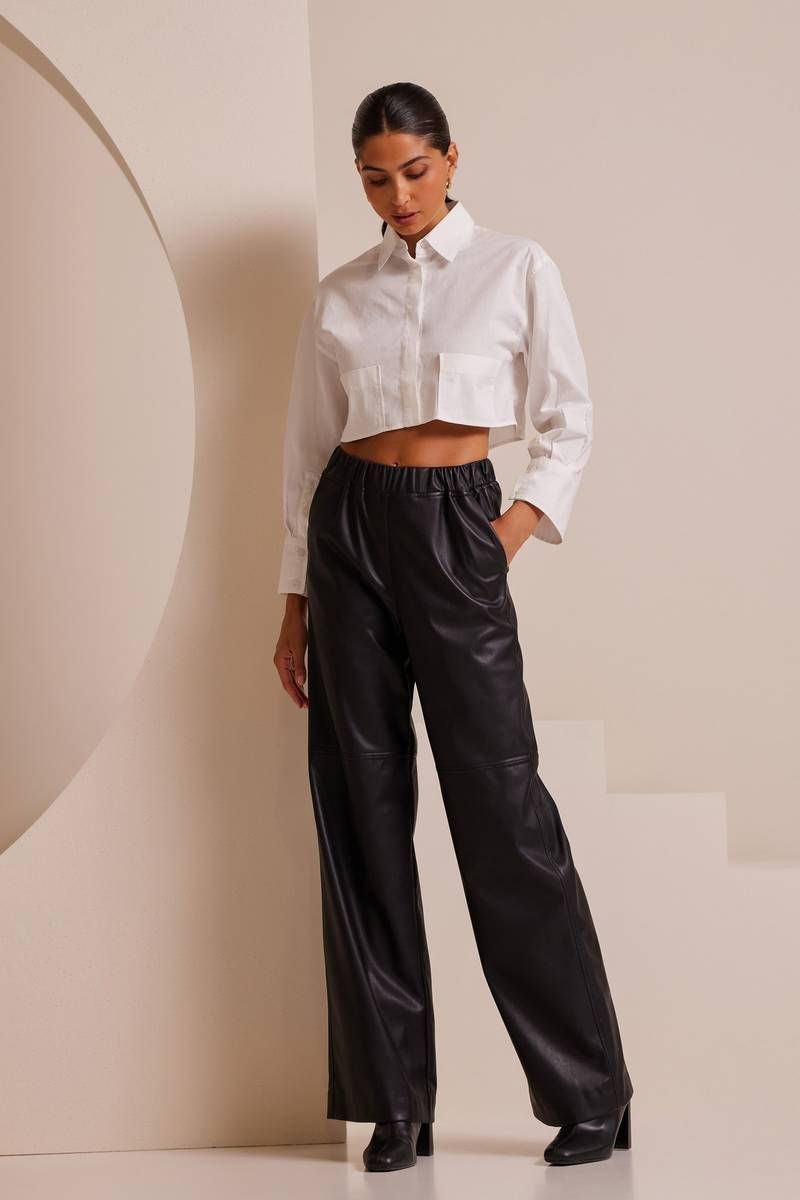 High-waisted leather pants