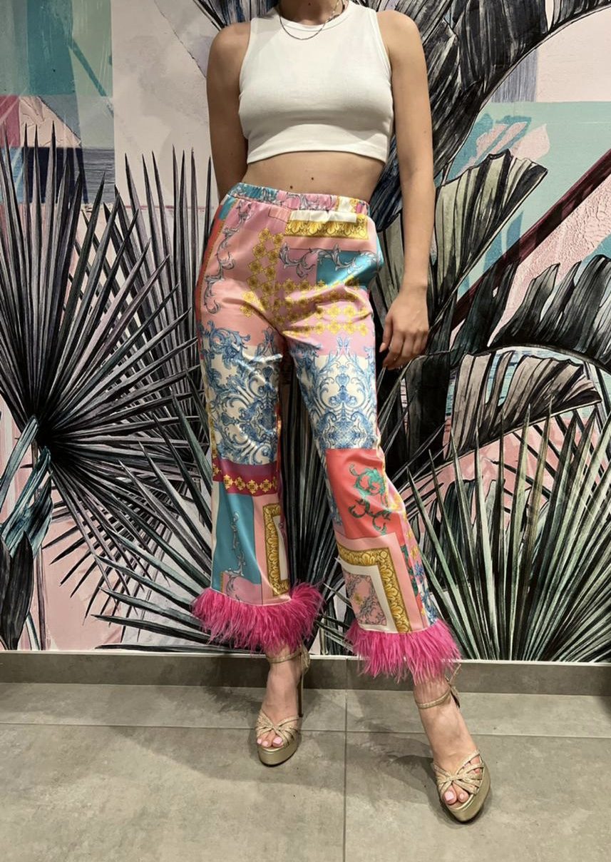 PANTS WITH A FEATHER AT THE FINISH
